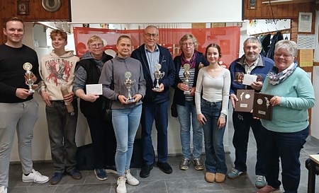 | Preisdoppelkopf und Knobeln der Niedersächsische Kameradschaftsvereinigung Kameradschaft Wellie und Feuerwehr Wellie Die Niedersächsischen Kameradschaftsvereinigung Kameradschaft Wellie und Feuerwehr Wellie veranstaltete im Neuen Jahres ihr Doppelkopf- und Knobelturnier. An diesem Turnier nahmen 20 Personen beim Preisdoppelkopf teil. Es wurden zwei Runden à 28 Spiele gespielt. Jeder erhielt einen Preis. Beim Preisdoppelkopf hat den 1.Platz Susanne Huskamp mit 112 Punkten einen ganzen Schinken gewonnen. Auf den zweiten Platz kam Martina Schober mit 105 Punkten und den dritten Platz Jürgen Gehrke mit 98 . Auf den weiteren Plätzen Hennig Lübkemann (91), Ulli Rohr (88), Claus Henniger (83), Marianne Plagge (73), Jürgen Sieling (76), Uwe Müller und Horst Witte (67) nach auswürfeln, Heinrich Vogt (64), Jörg Nöske (62), Walter Schober (60), Monika Hölke (59), Thomas Lübkemann (58), Marc Niemeyer (57), Andreas Burghardt (54), Heinrich Nordloh (53), Hans-Jürgen Thielking (45) und Mario Henniger (44). Beim Knobeln gewann einen Präsentkorb Jürgen Gehrke mit 4 Augen. Auf den zweiten Platz Heinrich Vogt nach auswürfeln und Marc Niemeyer mit je 45 Augen und den vierten Platz Heinrich Nordloh (44). Auf den weiteren Plätzen Marianne Plagge, Horst Witte, Friedhelm Hölke, Uwe Müller, Mario Henniger und Susanne Huskamp. Wer noch Interesse am Schießsport der Niedersächsischen Kameradschaftsvereinigung Kameradschaft Wellie hat kann sich unter 05023/2587 bei Claus Henninger melden oder in den geraden Wochen um 18 Uhr im Schützenhaus Steyerberg vorbeikommen oder sich über dem Internet Auftritt des Kreisverbands Stolzenau www.kv-stolzenau.de informieren. Die nächsten Termine, die Vereinsmeisterschaft der Kameradschaft Wellie am Freitag den 09. Februar und am 23. Februar 2024 ab 18:00 Uhr. Sonst alle 14 Tage in den geraden Wochen freitags Übungsschießen um 18:00 Uhr. Am 08. März 2024 die Jahreshauptversammlung im Freesenhof Wellie um 19:30 Uhr. |   |
